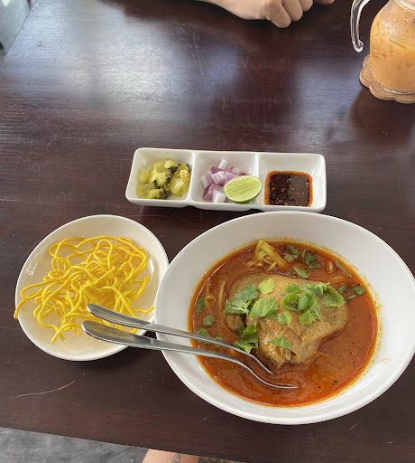 Read moreWe really enjoyed our meal at this place. I had a delicious and juicy chicken khao soi, which I would totally recommend if you can eat spicy food. As my partner doesn't tolerate spice very well he had a garlic chicken stirfry, which was also quite delicious, but not on the same level as the khao soi. Eventhough it is next to the road the atmosphere is nice, as the restaurant is very new and furnished quite nicely. The price is totally okay for restaurant food, especially as the khao soi is presented in a very appetizing way and you get a good portion of food.