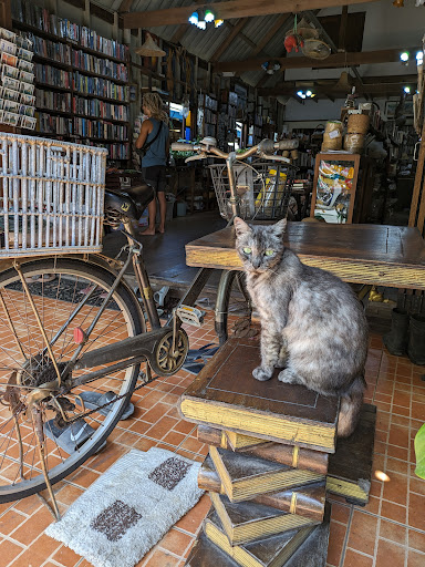 Read moreIf I could give more than five stars to the atmosphere, I would. With our bare feet on the warm dark wood flooring, and the sea breeze cooling the covered patio, the contented and friendly house cats lounging here and there, and the eclectic decor of corrugated tin, basketry, green plants, and cats, PLUS a used bookstore out front?? I think I could live there indefinitely. And the food was great, too. This might just be my favorite restaurant...