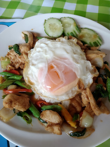 Standard or perhaps slightly better then standard Thai restaurant. Large tables, spacious seating and space between tables. The only thing is that the tables are relatively low, which can result in your thigh touching the underside. The condiments on the table, next to the silverware box containing your forks and spoons, is generously filled with hot sauce, fish sauce with chili, salt, pepper, vinegar, powdered chili, sugar, ketchup and what not. But you won't need many of those, the food being well flavored. It does, however, severely lack chili, believe it or not. I took a generous spoon of chili powder and some chilies from the fish sauce to bring my green curry to an acceptable yet relatively low heat level. No eggplant buds (the little balls that look like big peas) in the green curry, but delicious nonetheless. Great chicken cashew dish for my no spice girl and surprise, the "deep fried shrimp" were actually coconut shrimp. They were the exact same as you'd get in the USA, a nice fresh shrimp in coconut batter, fried golden and served with sweet chili sauce. Crunchy, nutty and sweet. 6 pieces for $3.50. The diet will have to wait... Friendly service by a young woman. Dishes were brought straight from the kitchen by the cook, a friendly young man. Be advised that the coconut shrimp took longer to make, as you'd expect, given that here, they don't come from the freezer but need peeling and deveining, then battering and frying so having them as a starter, as you'd probably like, will require pointing that out to the waitress as otherwise, you'll just get served whenever the dish is ready, as everywhere else in the country. The Thai iced tea was delicious, yet slightly too sweet, like something they'd serve in the USA. The coconut shake, however, was lacking in sweetness. I've had various degrees of sweetness in these beverages over the past weeks here and no two establishments...