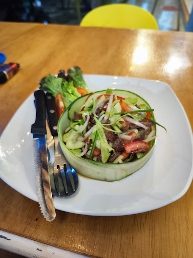 Read moreWe are here twice, once we had Thai dishes which were great (shrimp omelette and the noodles) the second time we had western breakfasts (potato waffle with smoked salmon and fruit and granola). The two meals were like night and day!! The Thai dishes were well executed and very tasty. The western breakfasts were really not very enjoyable sadly, the yoghurt was a mess of confusing flavours and the potato waffle was too soft, tasted just sweet rather than savoury or potato-ey, the smoked salmon and cream cheese were both strange and the sauce was sweet also. The burgers looked amazing. We were sad as after the first meal we were happy to come back, but we can’t recommend the breakfast dishes we tried for their taste. Portions...