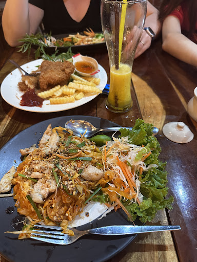 Gina’s was right across the street from our Airbnb and we went almost every night, it’s so so good! The staff is very kind and kid friendly and the food is super delicious as long as you know what you like! There’s tons of options but we fell in love with the pad Thai with chicken, fish and chips, morning glory, and mango sticky rice. As for drinks there smoothies are a bit more pricey than just a normal street vendor but they are super good and very refreshing on a hot day.