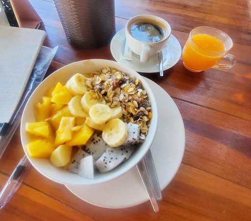 I came to work and have a late breakfast on their beach deck. Great view, can't get closer to the ocean. Ordered the healthy breakfast- muesli and yogurt with fresh, tropical fruits. Came with coffee and freshly squeezed orange juice. 150 baht