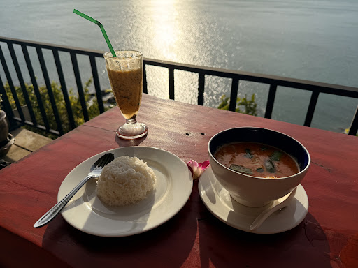 Phu Pha View offers a clear advantage: a genuinely impressive view. It’s one of the better vantage points I encountered on the island, providing a wide, scenic panorama. The menu presented a range of Thai dishes, and I found the prices to be reasonable, particularly given the location. We sampled several items, starting with their selection of shakes. The coconut, passion fruit, and papaya shakes were all notably fresh and well-prepared. Each drink had a distinct, natural flavor, suggesting the use of quality ingredients. For main courses, the coconut curry and the hot plate with seafood were both good. The coconut curry was flavorful without being overly rich, and the seafood hot plate contained a good variety of fresh seafood. Both dishes were cooked well and were recommendable. To conclude the meal, we opted for the mango with sticky rice. This dessert was nice, with the mango being ripe and sweet, and the sticky rice cooked to the right...