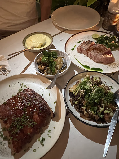 We ordered a main each; grilled tuna and tamarind glazed pork ribs. The pork ribs were tender and seasoned perfectly- the rub wasnât too heavy. Grilled tuna was made tataki style which was seared on the outside and rare on the inside- very good with yuzu sauce.