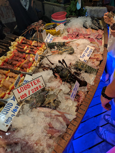 Oltre al barbecue del pesce fresco si ha a disposizione un menù sul quale ci sono i piatti tradizionali thai, fritti e pesce al forno.