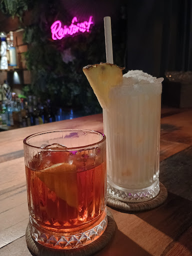 The staff if you’re not looking for a good vibe and friendly people then don’t go the rainforest. Three members of staff I don’t know their names are fantastic. The French bartender makes all her cocktails with a special ingredient French love and her witty banter is 🤌 love her definitely ask her for her special porn star Martini🍸. The one who looks like Thailands version of jason momoa is a specialist at working on a bar fast and efficient didn’t chat with him much. And my personal favourite the other Thai gentleman who drinks Thai rum and had a great time whilst he works is a great addition to the bar as he’s chatty funny and also up for a toast 🥂.