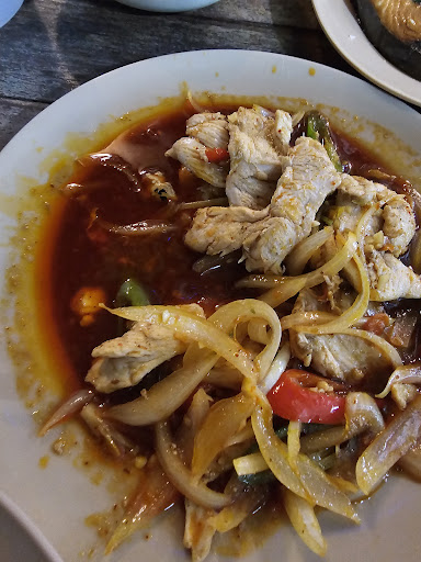 Chicken stir fried with garlic and chilli paste was full of onions and so much oil! The sauce was just oil and again very very bland. Tried to just pick out the vet dry chicken to eat only but had enough of such bland food....