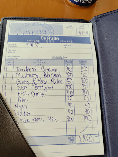 Read moreThis restaurant has two sides to it...a Thai side and an Indian side. This review is for the Indian side. My girlfriend and I were the only people in the restaurant and were seated at a table for 45 minutes watching them take food out of the restaurant and down the street. The place only had one fan on and we were sweating profusely and ended up finishing our drinks within the first 30 minutes of waiting. When our order came out, the garlic naan was under-cooked and doughy, the masala chicken tasted like it was in a cheap pasta sauce and neither the chicken masala or butter chicken plates had more than 3-4 pieces of chicken. The green salad plate consisted of tomato slices, cucumber, and raw onions...I’m not sure if the onions were supposed to be on that plate, or if they were just improvising. Overall our check came out to 830 baht...and we honestly felt like we had just gotten robbed. Poor service, long wait (even if you are the only one in the place), bad food, and the price is about two times more than what is it worth. Don’t make the same mistake we...