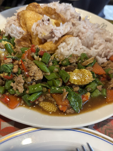 To clarify other people’s review on slow service— yes, it does take quite awhile for food to come out. BUT you must remember it is a small local joint ran by an old thai lady who probably cooks each dish/ serves one table at a time. This is NOT a fast food chain. Don’t expect quick service and don’t come if you’re starving and not willing to wait. It’s common sense. You’re on a small island that is full of locals who run on a slower pace than you’re used to. Don’t come to a small island expecting city-like living and expect them to live at YOUR pace. It’s genuinely so sad to see how people can’t slow down and be patient. Also, if you think it’s “dirty” (we didn’t think so, it’s just messy but so what?), then don’t place your order and go elsewhere, no one forced you...