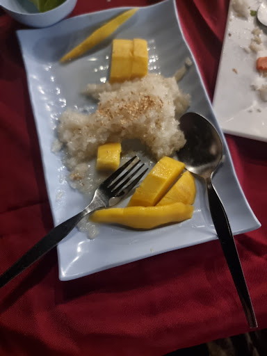 Food: We had questions about the restaurant's food handling practices. The staff explained that plates with raw meat and vegetables were placed on display in the sun, with no ice, at 4pm and these plates were then pulled and cooked for the customer up until closing at 10pm. Our Thai food dishes were very sweet (even sweeter than Thai food made in the US). We left the Gangsom uneaten.
