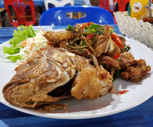 Read moreLet's start with the fact that this is an open space with a restaurant in it, not a night market. Same goes for the prices and the taste is average. Ordered the BBQ pork after asking if the portion was average or small since it didn't include rice and was very hungry at the price of 300 baht (!!!). The lady politely replied that it was a good portion. Have a look for yourself on whether the portion was fair or not .. good thing my partner did not order this, he would have been much hungrier than I am. When confronted, the lady got impolite and started yelling as well. We paid twice as much we would in an actual night market and I wish it was worth it... And the coconut was warm, had to put ice...