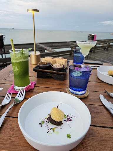 Read moreWe were a group of five dining at Dining on the Rocks in Koh Samui, and overall, it was a disappointing experience, especially given its reputation and price. The location within Six Senses Hotel is nice, and the golf cart ride up to the restaurant is a cute touch, but we arrived at 7 PM when it was already dark, and due to minimal lighting, we couldn’t see any of the view — so if you're going, make sure it's before sunset. The staff were welcoming and explained the set menu concept well, but the food was far from impressive. We had the 4-course menu: the lobster starter had a decent sauce but the lobster itself was tasteless and oddly crunchy; the shrimp starter included just one shrimp and was underwhelming; the risotto with calamari was the best dish of the night, but still not exceptional. For the main course, the wagyu was soft but not particularly flavorful, and the lamb was below average. Desserts were forgettable — the fondant was standard, and the coconut-based one lacked any appeal. What made the experience even worse was the 20-minute wait between each course — it felt like they were intentionally stalling to make you full without actually serving much food, which is something I’ve never experienced in any proper luxury set-menu dining. At around 4,000 THB per person, the experience doesn’t even come close to justifying the price. Out of all our meals in Koh Samui during a five-day stay, this was sadly the least enjoyable, and I wouldn’t recommend it — there are far better, more meaningful dining experiences...
