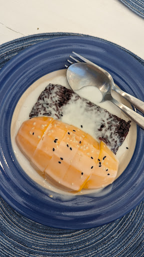 Nice beach area with shade, however the food was beyond disappointing. Rice for a curry was stale and old, spaghetti was dry with no oil on and pesto was made with parsley not basil (I would have been interested to try a Thai Basil pesto). The biggest disappointment was the reason we chose to come here, the mango sticky rice, which is shown as sweet pea sticky rice with flowers presentation. We got what I have pictured with this review, microwaved sticky red rice. Staff also sat on their phones so it was hard to get their attention. There was little passion or pride in the cooking and you could taste it. Good note is they were happy to accommodate vegetarian diet...