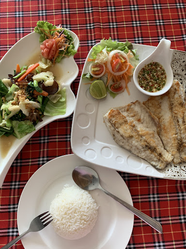 Average Thai food, I asked for a pasta dish (spaghetti marinara) with rice noodles as I have a gluten intolerance - the communication barrier was a bit tricky, regardless - the noodles were very dry (not much pasta sauce at all) & hardly any seafood. My husband ordered 2 Thai dishes - sweet & sour seafood & seafood fried rice, which were also average. The chicken satay sticks however were beautiful, so tasty & fresh! We were a little shocked to have people sitting so close by smoking, not an environment you want to be in when...