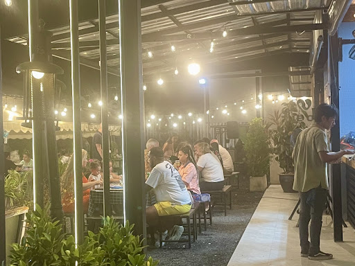 Having a lot of years all over Texas, and loving' barbecue, I wanted to get in and try this place in Samui as soon as I saw it. It's a long haul from Texas, but the barbecue was very good the night we were there. Brisket cooked just right, not dry, great flavour - pork ribs were the same, just right, what little chunk my bride would let me have, at least. The Burmese (Myanmar)staff were very friendly (thanks Joe) and put on a good plate for us. Sides were coleslaw and mashed potatoes, also good eatin'. I was interested to know what species of tree they were barbecuin' with, but they did not know. Note to boss who was not there: Some of us like to know these things, especially after eating a ton of hickory and mesquite - barbecued meat in the lone star. Portions were a good size for someone who ain't in his 20's anymore and eatin' everthin' in sight. My bride scoffed up them pork ribs like it was her last meal. I reckon her being younger caused that. The dogs didn't come beg at the table, which is also a good thing. Evidently they did not need to - by the look of 'em, just laid there looking at us. Genuine barbecue house dogs, well-fed and happy. Beer...