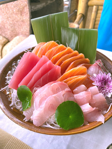 อาหาร: เราสั่งปลาดิบท้องถิ่น 3 อย่าง ราคา 950 บาท ปรากฏว่าซาชิมิบางเฉียบจนแทบมองไม่เห็นเนื้อ ไม่แน่ใจว่าเป็นสไตล์ของร้านหรือเราเลือกปลาผิด เพราะจากภาพโฆษณาใน Facebook และ Google จะเห็นว่าชิ้นปลาหนาน่าทานมาก ส่วนตัวเป็นคนชอบกินปลาดิบแบบหนาๆ เพราะรู้สึกถึง texture และรสชาติที่เต็มคำกว่านี้