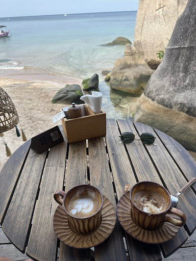 Thankful for their view and beach setting. On both occasions we dined for breakfast it was obvious that the restaurant is clearly struggling to keep up with the buzzing atmosphere, with wait times for food being in excess of 30-45 minutes. Multiple tables having to ask where missing dishes were. The adjacent dive shop has a flow of wet, sandy divers walking through the dining area leaving very dangerously slippery tiles for everyone to walk across (pregnant lady slipping over). Bathroom overloaded with divers leaving it very wet and unpleasant. I would return for some of their key dishes and coffees however feel there are some significant improvements that could be made. Definitely one that is better to visit before rush hour. I’d say their sister cafe - the lazy coconut is much better run with great service and more...