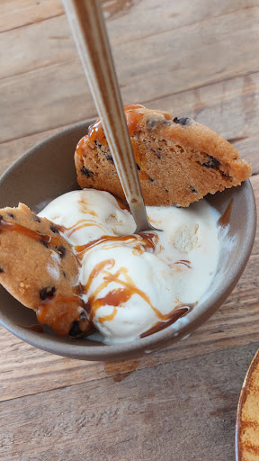 Instead of a sundae, we got a scoop of vanilla ice cream with 2 awfully moist cookies and a little sauce on top- we paid 180 baht for it!!! When I asked for a change, I was directed to the manager who seemed personally offended by the fact that the dessert wasn't good for me, giggled in my face and asked me if I didn't know what I was ordering in a disparaging and insulting way. I know what a sundae looks like - it's not a sundae!!!
