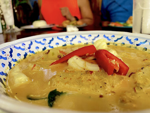 Recommendations are the coconut milk curry with squid and as a dessert, the banana with...