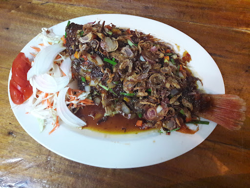 On my 1st stroll I was not so interested with the place since it's a bit run down thus at the 1st night at Krabi I skipped this. Only after I am longing for a good authentic northern Thai food the day after, then I saw this place is showing sign of authentic Isaan food. When visiting the place and reviewing the menu, then I notice their live sea food collection and various method of cooking, including the grilling with crusted salt. End up spending 1400 THB for 6 pax with a very high sense of satisfaction on umami. Service may not be top notch and the photo in the menu could be more appetizing and less confusing for non Thai people. However the owner family gave a good hints on what is nice to order. Giving 5 stars, really good food, value for money. But do not expect...