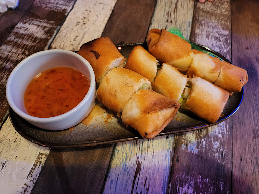 Read moreRelatively professional service for the island, but also feels uptight with the staff all masked up. Menu looks large but consists mostly of pasta/noodles. The sauces are creative and delicious, but the chicken in each dish we ordered was dry/chewy. Their cocktails are exceptionally good. The spring rolls are also unique, with a very thick rice paper shell. The staff couldn't really describe what the sauce on the "red chicken" is made from, and I can't either haha but it was delicious. Our favorite dish, however, was the yellow curry spaghetti. Addictively good! Least favorite dish was the spaghetti with tomato sauce; the sauce was homemade and tasted fine but the dish didn't have nearly enough sauce. The Massaman was also ok but didn't really taste like any massaman I've ever had before. It tasted more like panang, or...