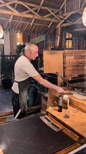 Unfortunately the pizza didn't taste good. Basic ingredients and undercooked edges. They were basically raw, still formable. Chef is using rolling pin, the edges are done manually (as the dough is not growing on itself, he does it like that. That's a big mistake, it makes it raw and not edible, even though the whole pizza is cooked well).