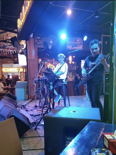 The first night we had already had dinner and were walking by and were drawn by the music....really regret not sitting there then:( The next eve we went straight there and had the BEST time ever thanks to the FANTASTIC Music! We reached around 7:30 and there was live music on and it was really good!Soon we heard the singer(can_afterlife) say that the band will start at 9:45pm. I was sad to hear that, thinking they would be leaving. Little did I know that the lead singer on the keyboard and the Drummer Boy would be joining them on stage and they were the whole band💫 What Energy, camaraderie, songs, music,showmanship....Everything TOP NOTCH!! It was like a rock concert in a lively, friendly restaurant! Each musician is superbly gifted! Jimmy (Yes we had to search online)-the lead has a God given voice-Charisma! Got everyone involved with the music! Old and new rock numbers played with aplomb an easy flair!Zombie, Sweet child of mine, Bohemian Rhapsody....each song, better than the next and no breaks! I was feeling tired for them!!! We thought we will stay for a few numbers but stayed on till they packed up around 1am! I thank my lucky stars to have found this rare gem of a place!Will have to come back to Thailand just to see them play again!Dont miss this place people ❤️ Thank You BLACK INNER(the name of the band- took some searching to find😄) and team Full Moon for the grand evening! They have happy hours till 9pm,but even other wise the drinks are reasonable(thank you for that too) Cannot...