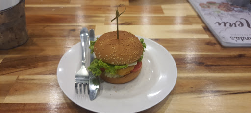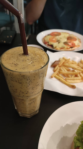 Other than that, without bias the food was really mediocre. We ordered a burger, a pizza, french fries with a hot dog and a couple of fruit shakes. The burger tasted like McDonald's (vegan so could be what you're after). Pizza was homemade but not in a good way, cheap cheese and not high quality ingredients, shouldn't be served at a restaurant. Fries and hot dog were just really dry. Shakes were ok, but you can get better fruit shakes on the street for half the price.
