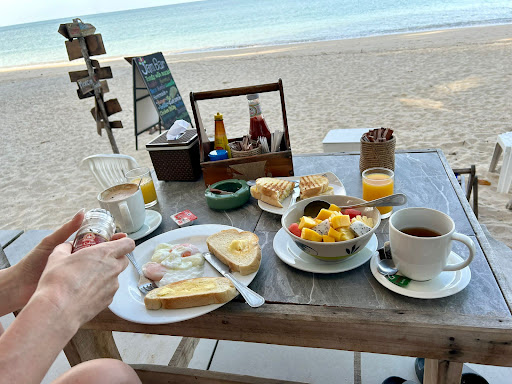 Read moreGreat bar on the beach and loaded menu with lots of Thai and western dishes. It amazes me they can make so many different things. I had a tuna salad sandwich with fries and a coffee. Both tasted great. You can sit at the bar and they have 4 tables that seat 4 persons each. The chairs are a little uncomfortable but the view makes up for this. Prices are very good considering the location and the food (70 Baht for the tuna sandwich and 50 Baht for...