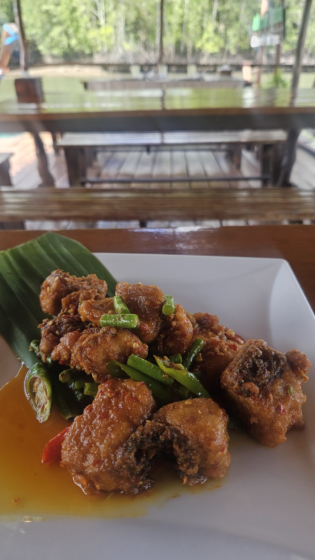 We were taken here as part of a mangrove tour we arranged ourselves from Krabi pier with a longtailman. We weren't really sure what we were actually doing with the language barrier, but with the aid of Translate, we agreed we would wander Ko Klang and the boatman would wait. We could have lunch if we wanted. After our walk, we called in to the little shop nearby, also seemingly run by the restaurant staff. One of the team was incredibly friendly and spoke very good English. We decided on lunch, but were not sure what to order off the extensive menu, so went with a waiter's suggestion of a friend whole fish, which we then chose with some vegetables and an iced tea. We had no idea of the fish price as it's by weight. Not an issue for us, but some might want to check if budget is an issue. The fish was with a tamarind sauce and incredibly tasty, crispy where it should have been, soft and well cooked where it should have been and with our veg was enough for us. The iced tea was the best we had, very fragrant, fresh and not too sweet. Overall the meal was very reasonably priced and the team made us welcome and we appreciated the English they could share with us. We felt it made our trip to Ko Klang quite authentic and a good antidote from busier more touristy areas, especially as being Friday lunchtime the village was quiet due to the men being at Mosque. The other great thing about the restaurant is that at low tide you can sit and watch all the crabs and mud skippers and crustaceans going about their business on the mud. Kids would love that. This lunch was one of our...