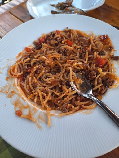 Very tasty dishes and a nice location and nice view. Furniture looks cozy.