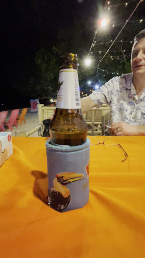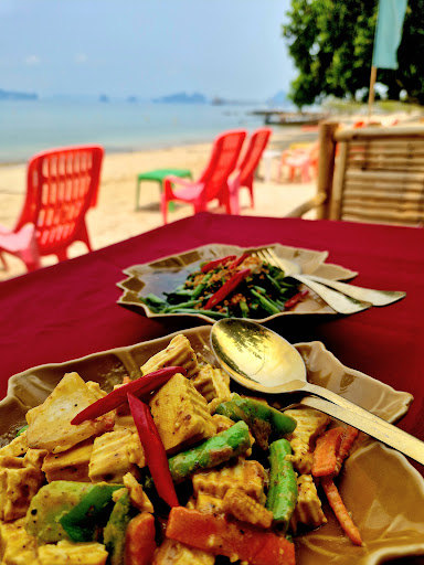 Great location on the beach but photos on the menu are NOTHING like what you actually get. I wanted the Fried Asparagus my first time there 3 nights ago, but they said they were out. I thought the 3 pieces of fish and chips looked good so I ordered it. There were 4 adults and a 4-yr-old in the group and food came out pretty randomly. My friend didn’t like his chicken pizza. The crust looked like a tortilla! The coconut water was good. My fish and chips had the fries but the fish was an un-skinned slice of fish with several bones. 🤢 NOTHING like the photo with 3 filets. It tasted ok. Last night we went and I requested ice tea - NO sugar. They called to me from the “podium” holding up a can that said LEMON asking if I wanted that. It was much smaller than my tea would’ve been but I like lemon. It had “Less Sugar” but yuck! I asked for water and after 1 sip of the can, they still charged for it. I ordered my food from the Thai side and requested the delicious-looking tempura fish filetS! I got another single, LOTS OF BONES, skin-on fish filet. The smoker there was making the table we were At uncomfortable so we moved. Fries were pretty good. The other friends were enjoying the rice dishes. Friendly guy but obviously does not understand enough English to provide...