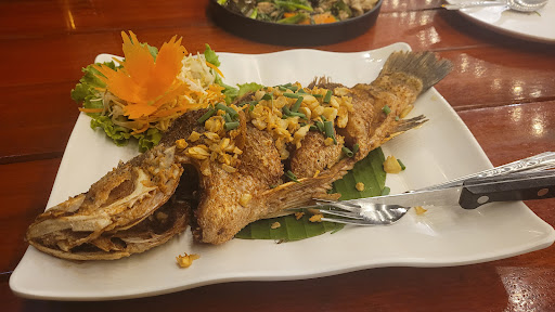 We ordered stir-fried crab meat with black pepper and fried fish with garlic—both dishes were decent, flavorful, and fresh. The portions were reasonable, and the seafood quality was good. While it may not be the absolute best seafood restaurant in Krabi, it delivers a satisfying dining experience.