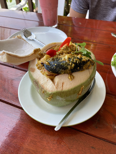 We ordered fried beef, chicken curry and rice. Avoided seafood as my wife was allergic. We showed them on the menu each item we ordered and checked with them.
