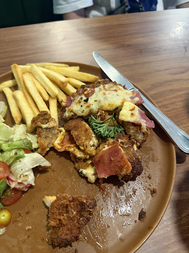 I ordered chicken Parmesan, and started to cut it up but it arrived raw. I informed the staff about this, and they promptly took it back. I anticipated them to replace it with a fresh piece, but instead, I received the same cut up raw chicken, albeit smaller. It seemed as though they had either removed the raw parts or microwaved it, which was certainly not what I had ordered. Moreover, it was a blatant attempt by the cafe to save money, as the food arrived cold and had lost its freshness by the time this piece of chicken was served for the...