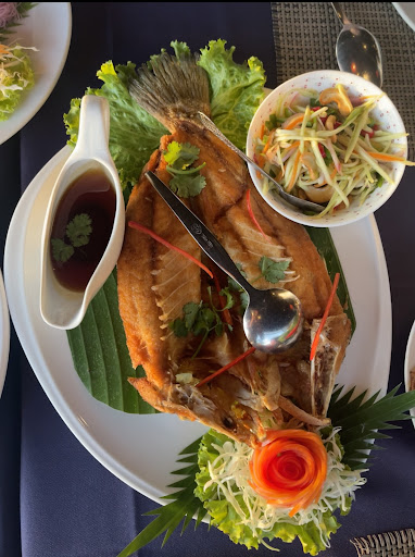 For the main dishes, I tried to taste a bit of everything. The stir fried Andaman lobster with salt and chili was first on the list. It was juicy, tender, had the perfect amount of spice, and a nice char from the grill which brought it to a whole new level. Out of the curries I decided to order the Southern Curry with crab meat and chaplu leaves. It was rich, creamy, and had that traditional southern Thai flavor to it which made it so delicious. I definitely recommend having it with some rice.
