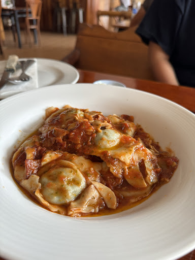 Pastas: Salsiccia e Funghi had nice minced pork sausage / Boscaiola ricotta and spinach ravioli with bacon and mushrooms was very hearty.
