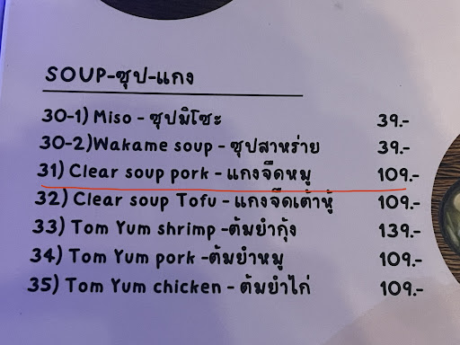 The price is quite reasonable, and what you get is what you pay for. Most items have 50g or 100g options. They provided a call bell to flag them for service as necessary. There are some types of bugs constantly flying around and onto the food, but since it's outdoor in Thailand, that's more or...