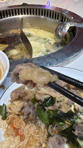 Read moreบุฟเฟต์มีราคาให้เลือก 3 ระดับเริ่มที่ 299 ,399 ,499ไม่รวมรีฟิลน้ำ และถ้าเลือกน้ำซุปหมาล่า +69 บาท น้ำซุปดำดี / น้ำซุปเล้งเครื่องสมุนไพรทุบละเอียดทำให้ซดน้ำและมีเศษสมุนไพรติดเนื้อ ของสด กุ้งดีมากแกะเปลือกด้วย ไส้เป็ดไม่มีกลิ่น เนื้อดีอร่อย แต่สั่งรอบ 2 เนื้อมีมันเหลืองๆแทรกแอบเหนียว น้ำจิ้มปรุงให้อร่อย ที่จอดรถอาจลำบากหน่อย หม้อต้มใหญ่ดี...