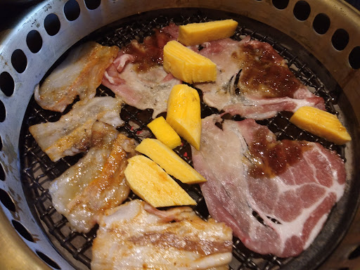 I really love BBQ with spinach in sesame oil and kimchi here. Cabbage with sesame oil is also good to eat with thin sliced meat that tasty and easy chewing. There are many kinds of fresh and side dishes for meat lover set. Drinking is not included. Food was good and fresh. I like it. Service was fine. However, I`m looking to see more improvement for next visit. First of all, the air condition was too hot, like sitting outside building. I was sweating even drank many glasses of cold cola. The second, the stove was not hot for cooking even all meat was thinnest sliced that still raw after 10...