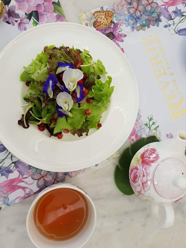 Read moreWe were visiting the muay thai next door and saw this beautiful little cafe. It is so pretty with white furniture, tea cup themed chandeliers, flowers and more. They serve dessert sweets and thai influenced lunches. It would be best described as whimsical. Owned by a Thai Rnb celebrity, she certainly has style. The food was really good, particularly the sticky rice balls and chicken. The tea was also good, you select your type after smelling the aromas and they make. The earl grey...