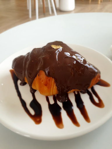 Enjoyed my visit had Macha latte and chocolate croissant which I can't fault for quality and price. Interesting building with very high ceiling, minimalist white interior design with what I would describe as "IKEA " type furnishings. Staff friendly and welcoming. Croissant was smothered in a decent quality chocolate with a little bit of gold leaf on top. Macha was fine nothing special. If I'm eating in as opposed to take away I prefer a proper glass or cup rather than a plastic one but that's just a personal preference. The music playing when I visited was similar to a hotel piano bar or lift I'd prefer something a little bit more uplifting but again that's just personal and I'm sure lots of people like that style. Plenty parking. Little playground for young ones. All in all...
