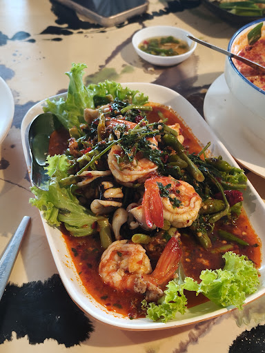 We went here after visiting the museum nearby. The menu is all in Thai and the staff didn’t really speak a lot of English. There were pictures in the menu we could point at and we chose things kind of randomly (pictures have no prices) Everything we ordered was absolutely delicious! We had to order more food because we wanted to try their other dishes. All of the dishes we ordered were addicting, spicy and flavourful! Service was attentive as well. We ordered a large beer, they refilled our glasses and checked in to see if we wanted more. There was live music as well that made the vibes really nice! Just be aware that they do charge 20 baht for ice which we didn’t know. We ordered 4 dishes, a side of rice and a beer. The bill came out to 690 baht which I think is very reasonable considering the quality of food and service! Maybe pricey for some but I really...