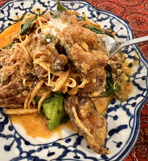 The green curry with fish balls is another standout. The broth is vibrant and herbaceous, with just the right touch of sweetness and spice, and the fish balls are fresh, bouncy, and flavorful.
