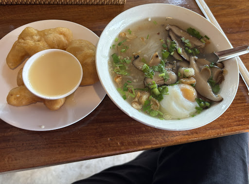 Read moreร้านข้าวเปียกเส้นร้านดังในถนนเชียงคาน ร้านตั้งอยู่ที่ริมถนนคนเดินเชียงคานซอย 20 ร้านเปิดตลอดทั้งวัน ตั้งแต่เช้าถึงค่ำ ลูกค้าเต็มร้านตลอด ยิ่งช่วงเช้าถึงสายๆลูกค้าจะเยอะมาก และช่วงค่ำอีกทีนึงคนก็จะเยอะมากเช่นกัน เมนูอาหารที่มีก็เป็นอาหารเช้าทั่วไป มีทั้ง โจ๊ก ข้าวเปีกเส้น ข้าวต้ม ไข่กระทะ หมูยอลวกจิ้ม ขนมปังปิ้ง ปาท่องโก๋ กาแฟ โอวัลติน ต่าง ๆ ปาท่องโก๋จะเป็นแบบให้ลูกค้าหยิบเอง ราคา 3 ตัว 10 บาท ขนมปังปิ้งก็สามารถทำเองได้เลย จะมีกาแฟ โอวัลตินให้ชงเอง และก็จะมีแบบกาแฟสดให้สั่งได้อีกด้วย หยิบอะไรมาทานบ้างเวลาคิดเงินก็แจ้งพนักงานได้เลย รสชาติอาหารกลางๆ ไม่ค่อยว้าวมาก แต่ด้วยบรรยากาศของเชียงคาน เลยทำให้อาหารอร่อยขึ้น แม้จะลูกค้าเยอะ แต่ร้านบริการรวดเร็วมาก รออาหารไม่นาน ข้าวเปียกเส้น ข้าวซุปกลมกล่อม เส้นเหนียวนุ่มไข่ยางมะตูมอร่อยเลย เราชอบเมนูนี้ที่สุดแล้ว ไข่กระทะ กลิ่นเนยหอมๆ แต่หมูสับที่ปรุงรสมาค่อนข้างจืด หมูยอลวกจิ้ม เรารู้สึกว่ารสชาติแปลกใหม่มาก ไม่คุ้นชินกับหมูยอรสชาตินี้ อาจจะเป็นสูตรของร้าน เนื้อหมูยอนุ่มๆไม่ค่อยแน่น ราคาอาหารไม่แพง...