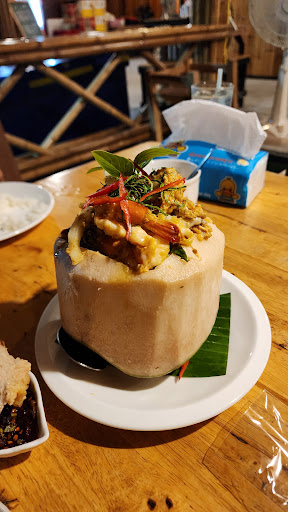 อาหารอร่อยทุกจาน ราคาดีมากกกๆ เครื่องทำถึงเนื้อสัตว์ที่ให้เยอะทุกจาน คุ้มค่าที่สุด แนะนำเลยค่ะ เมนูที่ชอบคือ หมูกรอบผัดขี้เมา (สูตรสมุนไพ รสชาติเผ็ด หมูกรอบกรอบถึงใจ) ไข่ตุ๋นหม้อไฟ (จังหวะความนุ่มมันดีมากกก เลิฟสุด) ยำผักบุ้งกรอบ น้ำจิ้มยังมีกุ้งมากกว่า 4 ตัว ปลาหมึกอีก ปลากระพงทอดสมุนไพร (จานใหญ่มากกก! เนื้อปลากรอบแน่น สมุนไพรทอดมาทานคู่คืออร่อย พริกไทยสดทอดคือนุ่มไม่เผ็ดเลย ทานกันหมดจาน) สุดท้าย ห่อหมกมะพร้าวอ่อน (มะพร้าวอ่อน อ่อนจริงๆ ทน้ำห่อหมกมาแบบคลุกคลิก เพราะกุ้ง ปลาหมึกมาล้นๆ)