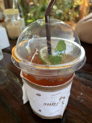 Read moreตกแต่งสวย ร่มรื่น เมนูเครื่องดื่มธรรมดาทั่วไปเหมือนคาเฟ่ร้านอื่นๆ แต่ราคาเครื่องดื่มบางเมนูราคาค่อนข้างแพงเกินไป รสชาติเครื่องดื่มใช้ได้ ส่วนตัวสั่งชามะนาวรสชาติดีไม่หวานเกิน มีขนมเค้กและขนมทานเล่นๆอื่นๆเช่นป๊อบคอร์นแต่ราคาแอบแรง ที่นั่งภายในร้านมีหลายที่ พนักงานบริการโอเค...