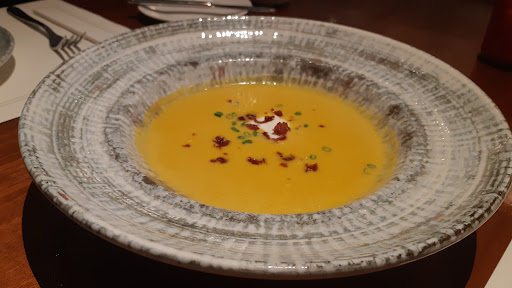 Then, Roasted Japanese Pumpkin Soup. This dish was quite sweet and rich. I recommend enjoying it separately from your wine, as the sweetness can slightly overpower pairing. On its own, though, it’s delicious and comforting.