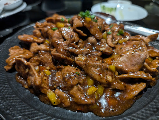 Now, the Fried Hong Kong Noodle was just OK. The same with Pan Fried Ribeye with Crispy Garlic. It sounds good on the menu, it didn't deliver. I also got the duck meat from the Peking Duck cooked with Black Pepper. It was OK. I think the one at Man Ho was better. Skip the Bok Choi.