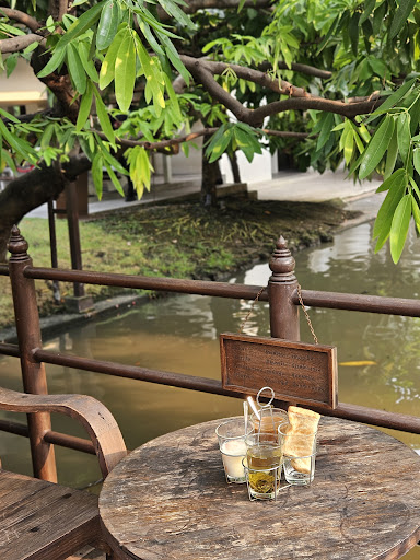 There are two zones: an indoor area with limited seating and an outdoor area. The outdoor area can get hot by late morning, even with umbrellas and fans, so I recommend coming early. You can also buy fish food if you want to feed the fish in the pond. Keep in mind that it might get busy on days when there are weddings nearby. Overall, it's a charming spot for...